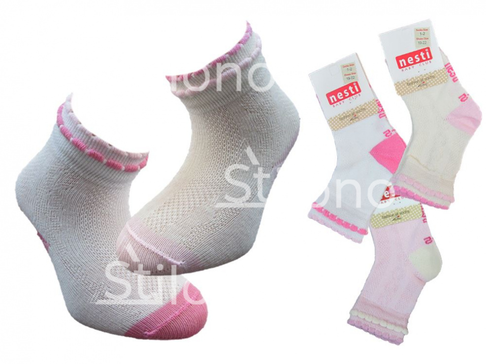 В любой сезон хлопчатобумажные тонкие носочки для малышей радуют владельцев розничных точек активными продажами. Жаккардовые носки представлены в размерном ряду от 0 до 4 лет. Это изделия высокого качества, проверенное годами сотрудничества с производителем NESTI. Оформить заказ на хлопчатобумажные детские жаккардовые носки  можно мелким, средним или крупным оптом, сформировав партию из изделий, подходящих по размеру для конкретной целевой аудитории.